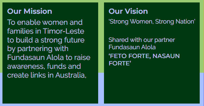 To partner with Fundasaun Alola in enabling women and families in Timor-Leste to build a strong future.