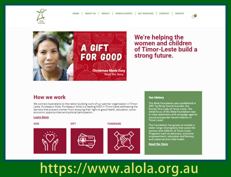 At the same time in order  to continue to promote the work in Australia, a new charitable organisation known as Alola Australia Ltd was formed. Alola Australia is managed by volunteers in Australia working in partnership with  Fundasaun Alola