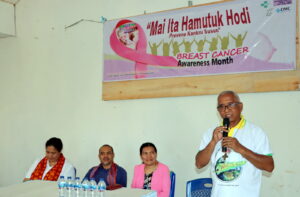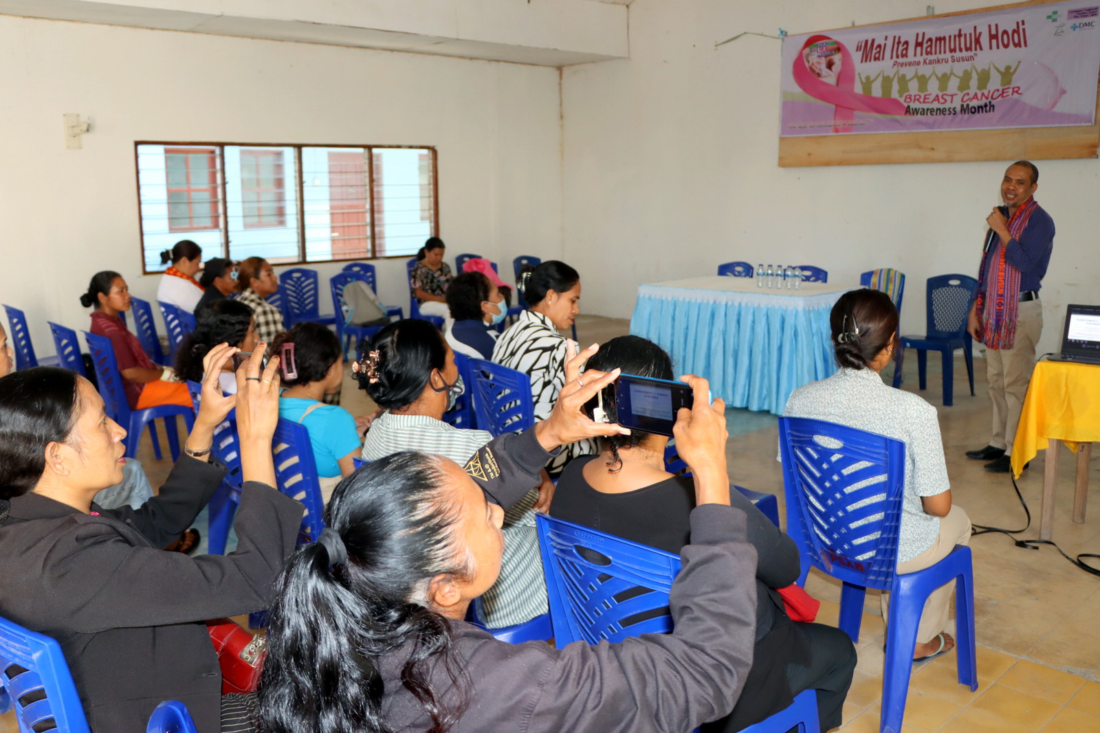 A number of other socialization activities were also carried out for the growth of public awareness regarding early detection of breast cancer such as socialization to the FMA Timor-Leste Sister Community (2/10), socialization to ANZ Bank Staff (18/10) as well as socialization to the public communities in 4 administrative posts, Baucau (15/10), Liquica Villa (Liquica), Cailaco (Bobonaro) and Hato-udo (Ainaro). During the celebration, the community was also given the opportunity to get access to breast cancer screening facilitated by the DMC-Dili team.