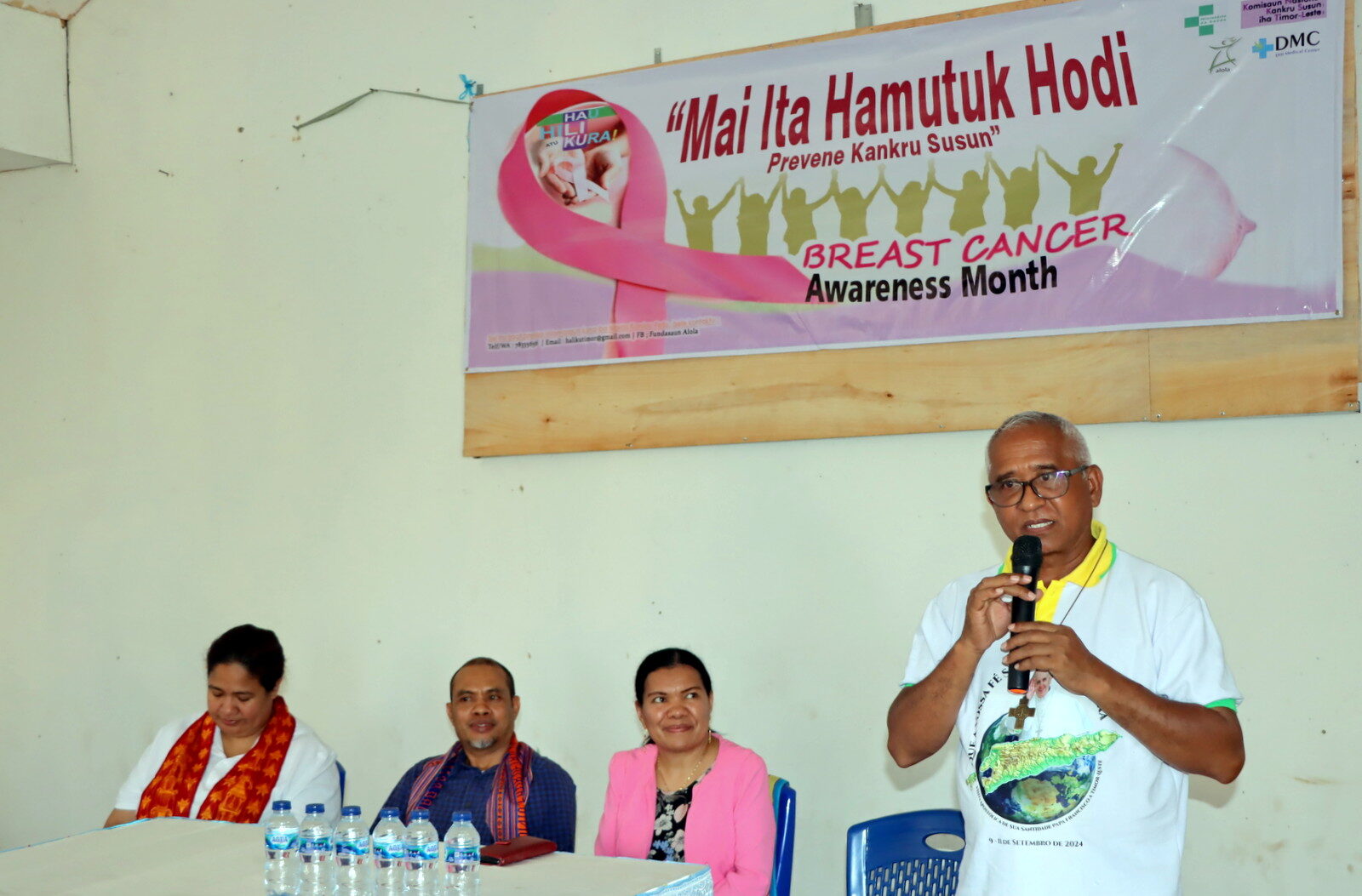 In the initial session of the socialization, the Alola Foundation through its Executive Director, Ms. Maria Guterres expressed his gratitude to the Parish Saint Antonio Vila Antiga-Baucau, Father Manuel Ximenes, for collaboration gathering the community, especially Catholics in Baucau including breast cancer survivors in celebrating October Pink.