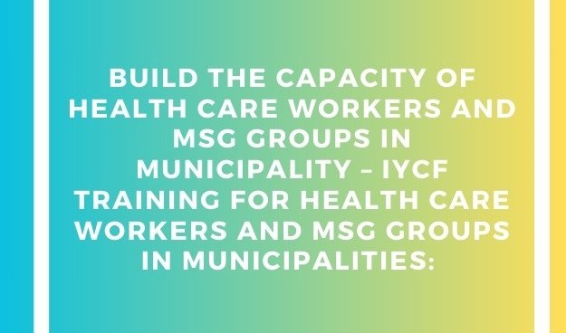 The Alola Foundation Maternal and Child Health (MCH) Program continued its collaboration with the National Institute for Health and organized a four-day middle-level training on IYCF for 95 health care worker representatives from Community health centers and Health Posts from Lautem and Viqueque municipalities. The objective was to equip health care workers with the necessary skills to train MSG members in their respective villages.