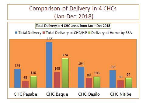 Moreover, BPP in Baguia Sub Municipal of Baucau Municipality has contributed to the increase number of pregnant mother had safe delivery at health facility. The data shows that 203 deliveries within 2018, 93 deliveries at health facilities (46%), 62 deliveries at home assisted by health workers (31%) and 48 deliveries at home assisted by family members (24%).  From data above BPP coordinator had referred and support 33 pregnant mothers include mother’s deliveries 21 out of 93 deliveries at health facility and 12 out of 62 deliveries happened at home assisted by SBA.